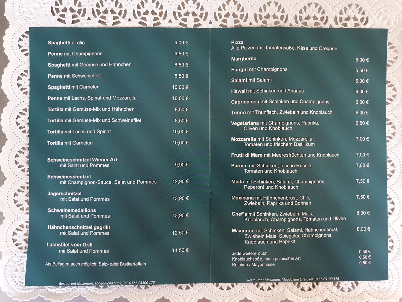 Delante del restaurante hay un aparcamiento gratis para nuestros clientes. ¡Esperamos tu visita! Ven a echar un vistazo. Podrás pagar fácilmente con tarjeta EC, Maestro, MasterCard, VISA, American Express o tarjeta contactless. También es posible pagar en efectivo. También te prepararemos la comida para llevar si así lo prefieres. También ofrecemos servicio de catering ¡Solo tienes que preguntar! Nuestro local también está disponible para eventos privados. Ponte en contacto con nosotros y encontraremos la fecha adecuada. Abrimos 5 días a la semana de 00:00 a 00:00. Nuestros días de descanso son los luneses y marteses.